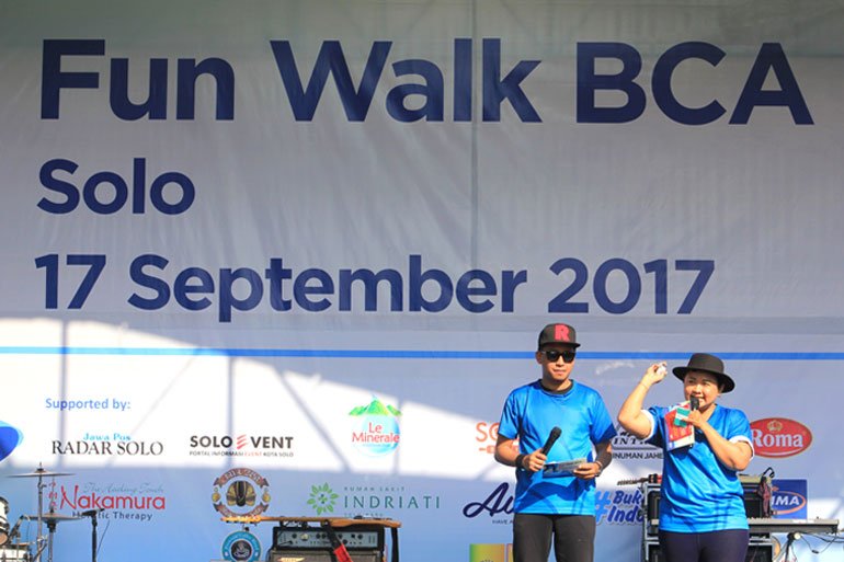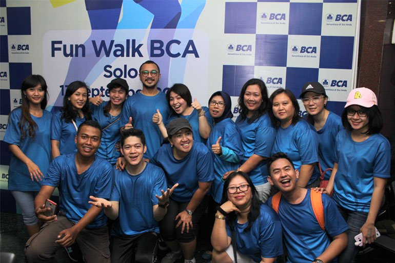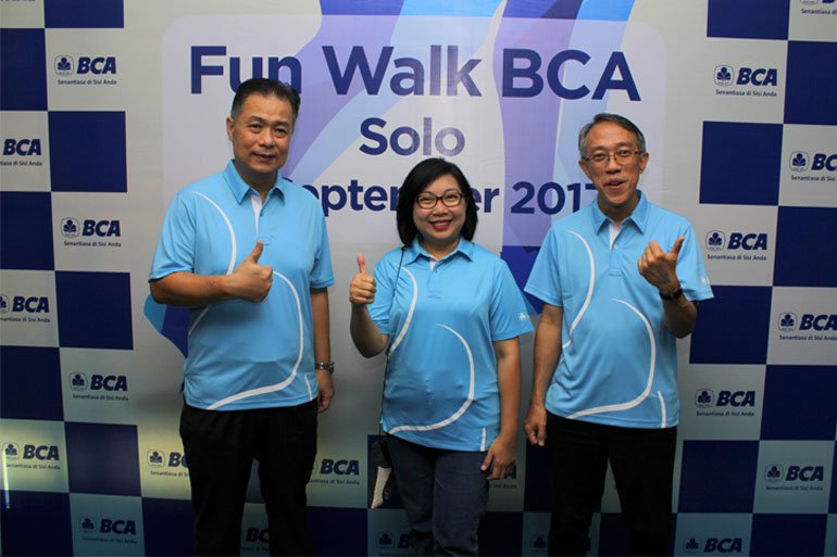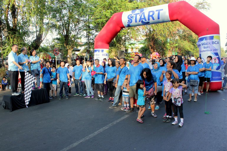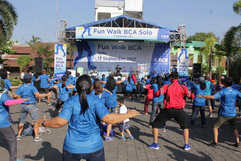 Soloevent.id – Bank BCA Solo mengadakan Fun Walk bersama nasabah. Acara diadakan pada Minggu (17/9/2017). Rute yang ditempuh Fun Walk BCA yaitu kantor BCA Gladag-Jl. Jenderal Sudirman-Jl. Ronggowarsito-Jl. Gajah Mada-Jl. Slamet Riyadi-kantor BCA Gladag.