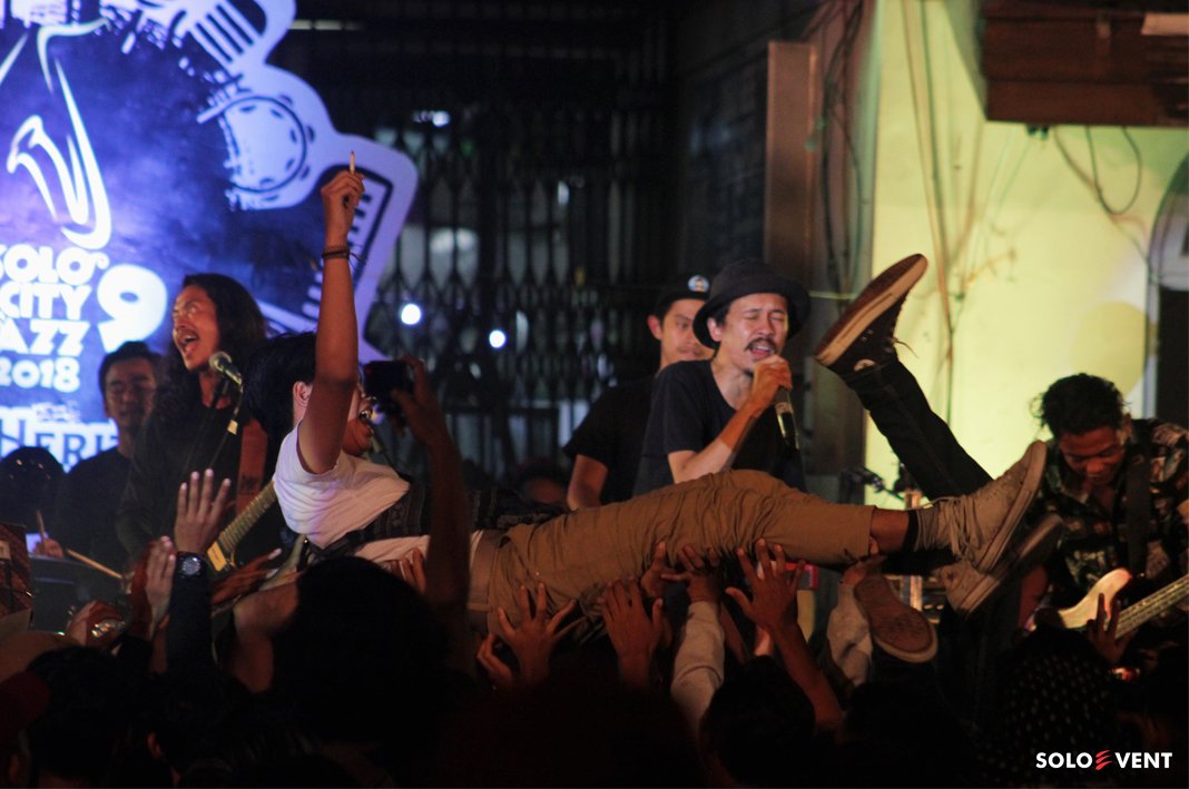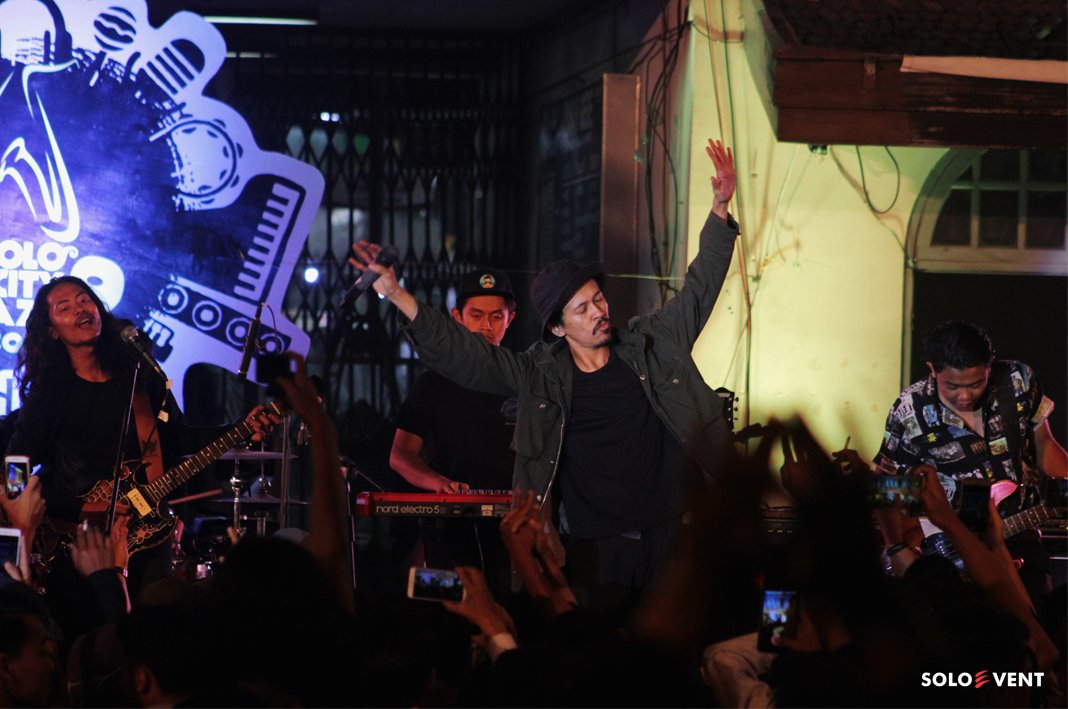 Saat Soloevent tiba di lokasi, Soloensis tengah bersiap unjuk gigi. Malam itu spesial karena band rock dari Kota Solo itu berkolaborasi dengan Farid Stevy. Bersama vokalis band FSTVLST itu, Soloensis memainkan dua lagu cover, yaitu “Bung Hatta” milik Iwan Fals dan “Don’t Look Back in Anger” yang diopulerkan Oasis.