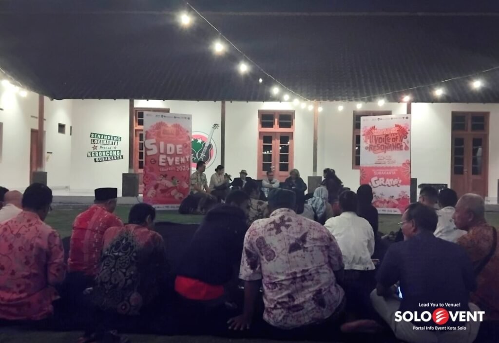 Jumat (15/8/2025) sudah digelar side event bertajuk Bincang Gamelan Musik Etnik di Galeri Lokananta. Dalam acara ini turut hadir para dewan kurator GEMFest 2025 seperti Joko Suranto atau Gombloh (Dewan Kurator), Zulkarnain (Dewan Kurator), Aris Setiawan (Dewan Kurator), Pujiyono (Pamong Budaya Kota Surakarta), Sruti Respati (Creative Director) dan Ipang Kurniawan Yunianto (Creative Design Gem Fest).