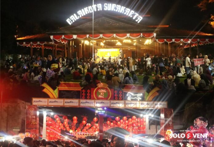 Soloevent.id – Puncak perayaan imlek di Kota Solo digelar dengan panggung hiburan semarak heritage in harmony di kawasan Pasar Gedhe Solo, Senin malam (16/2/2026). Kemeriahan semakin terasa karena banyak penampil yang menghibur malam itu. Mulai dari penampilan Kesenian Danirmala, Kesenian Sanggar Wung Ayu, DJ Anggara Music Ethnic, Owah Geer Band, D’Diamondz Band, Lavora hingga Himawan Diamond feat Silvy Kumalasari dan Diandra Ayu.