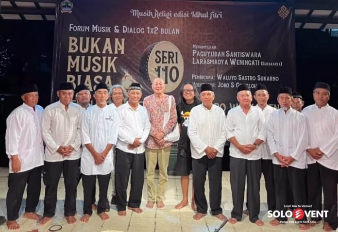 Soloevent.id – Perayaan Event Bukan Musik Biasa (BMB) kembali digelar di Pendopo Wisma Seni Taman Budaya Jawa Tengah, Senin (30/3/2026). Acara yang digelar ke-110 kali ini dalam edisi Hari Raya Idhul Fitri dengan menampilkan musik-musik religi.
